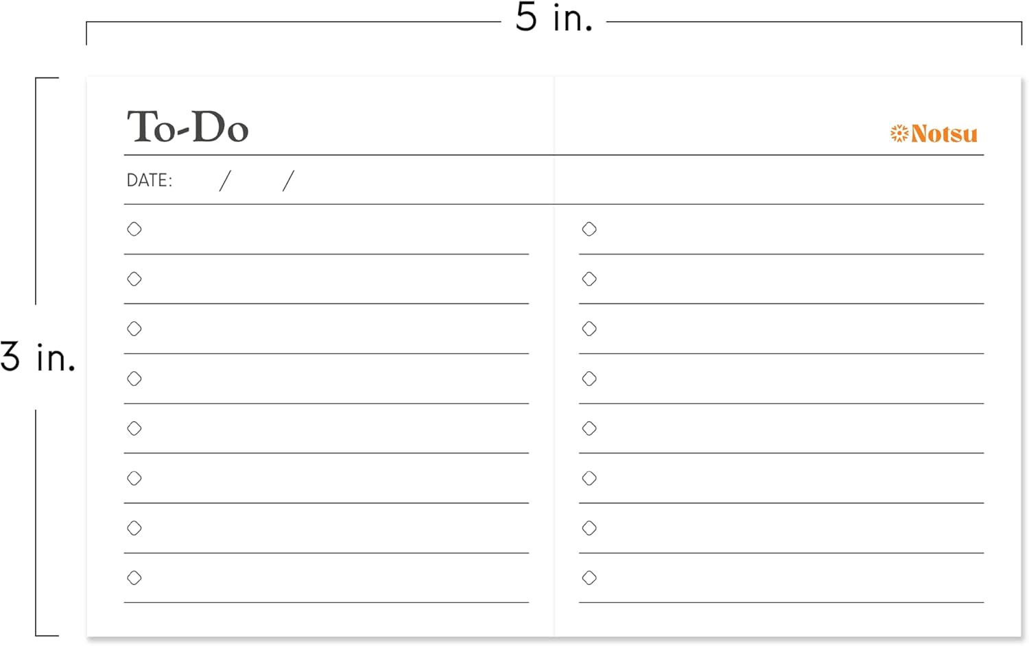 - FLEXIBLE AND ADAPTABLE | Every person is unique, so there's no one “right” way to track and accomplish big things. Notsu to-do cards feature a lightly-structured format to help you find your time management system.